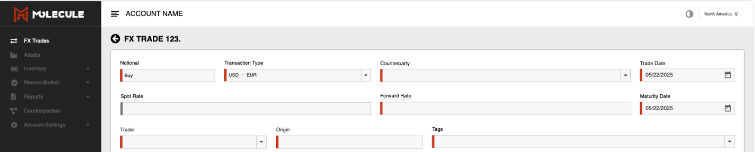 In energy commodities trading, FX (foreign exchange) transactions are essential for managing exposure to currency fluctuations — especially when physical commodities are priced in USD or other foreign currencies, but your reporting currency is different. Molecule supports three types of FX transactions: FX Forwards, FX Swaps, and Non-Delivering Forwards.These instruments allow you to hedge currency exposure, trade FX directly, and manage foreign exchange risk.