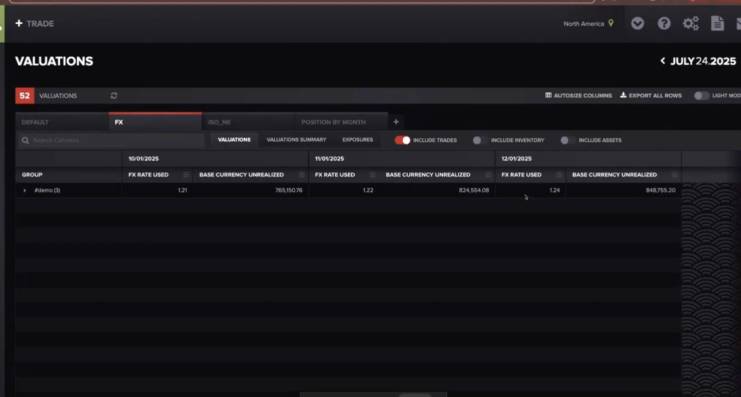 Sources: Current Forward Rate: From your uploaded forward curves | Trade Forward Rate: Rate entered when trade was booked | FX Rate: Conversion rate to account base currency