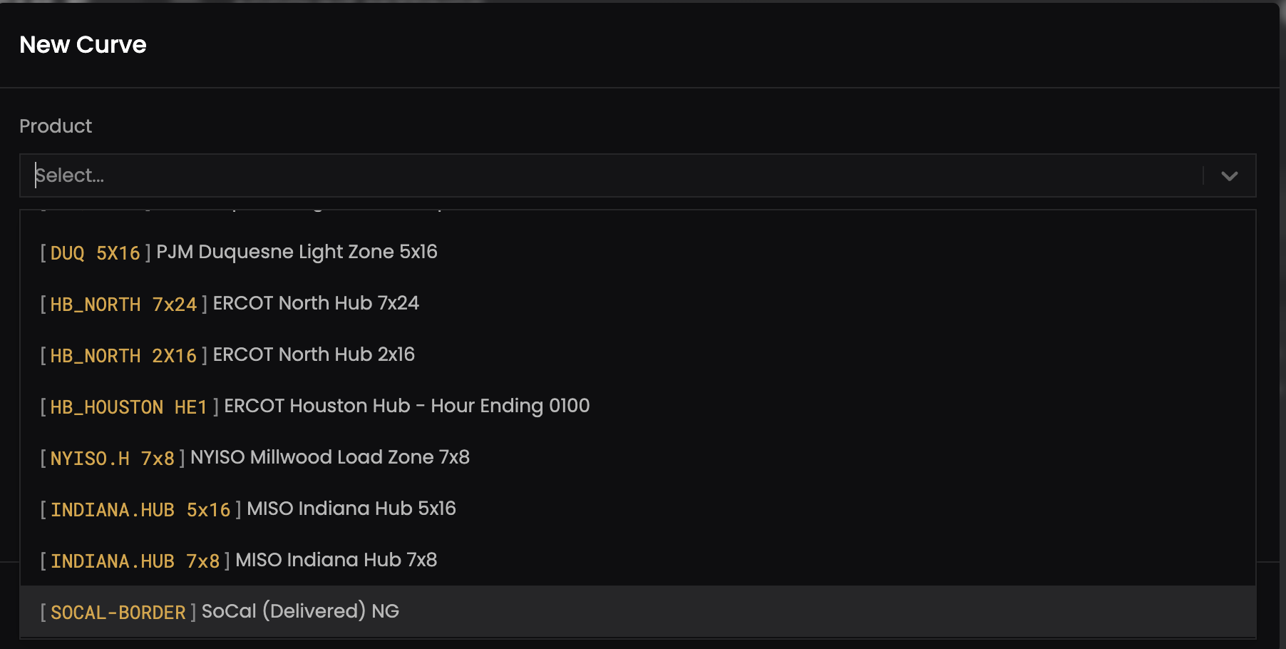 Select a Product: Click the Product dropdown to choose the product you want to build a curve for.