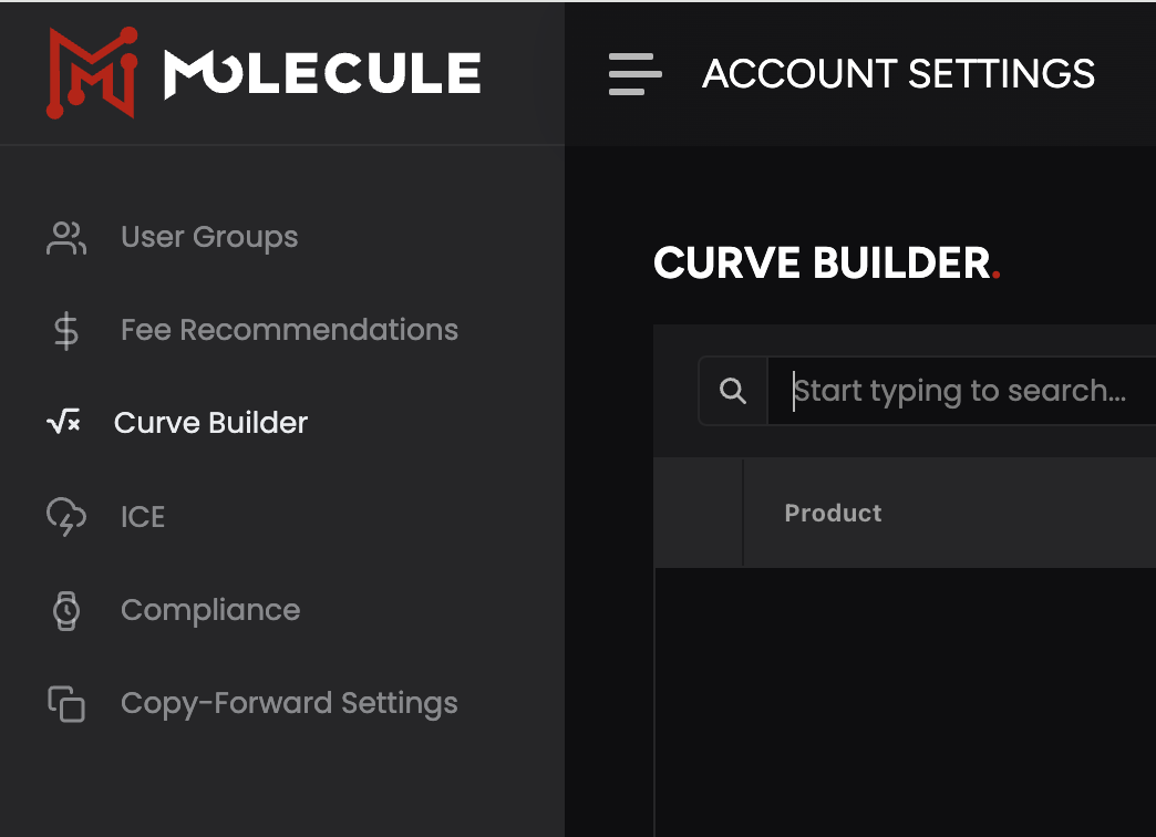 Access to Curve Builder is restricted to users with specific permissions. If granted the Market Data Admin permissions, you can build or edit curves for your account. Find Curve Builder in the Navigation menu Settings > Account Settings 💡 Tip: If you don't find Curve Builder in the menu, you'll need to request access from your account administrator.