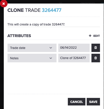 If no trade date is provided, the resulting trade will have a trade date equal to the user's local date at the time of cloning the trade.