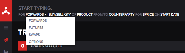 Notice there is a drop-down menu below the text box where you can specify the type of trade you are booking. There is also an outline for how to input your trade to the right of the menu. This outline will update depending on your selection to show how each trade needs to be booked. You can find a few examples below:
