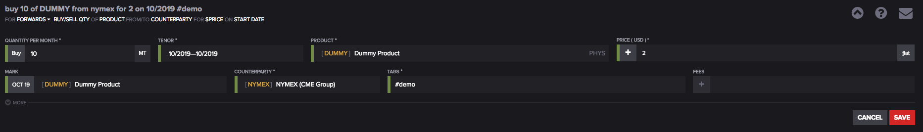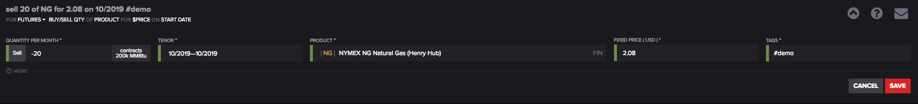 One of the many awesome things about Molecule is how easy the system is to use, and booking a trade using NLP (Natural Language Processing) is a great example of that. Trades that are executed on the ICE and CME exchanges automatically flow into the system, but if you do need to book a trade manually, here's how to get started: