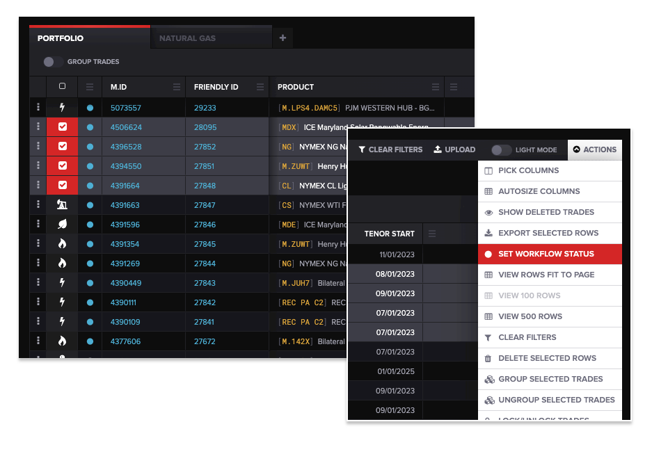 Once you have selected the trades, open the Actions menu.