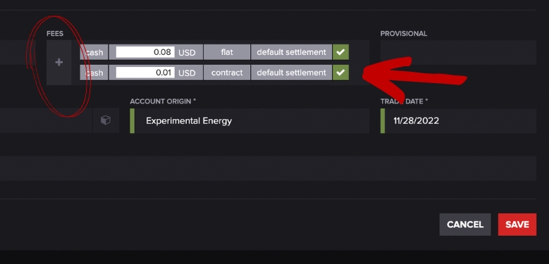 If you'd like to enter fee information on a trade, select the MORE drop-down on the left-hand side: