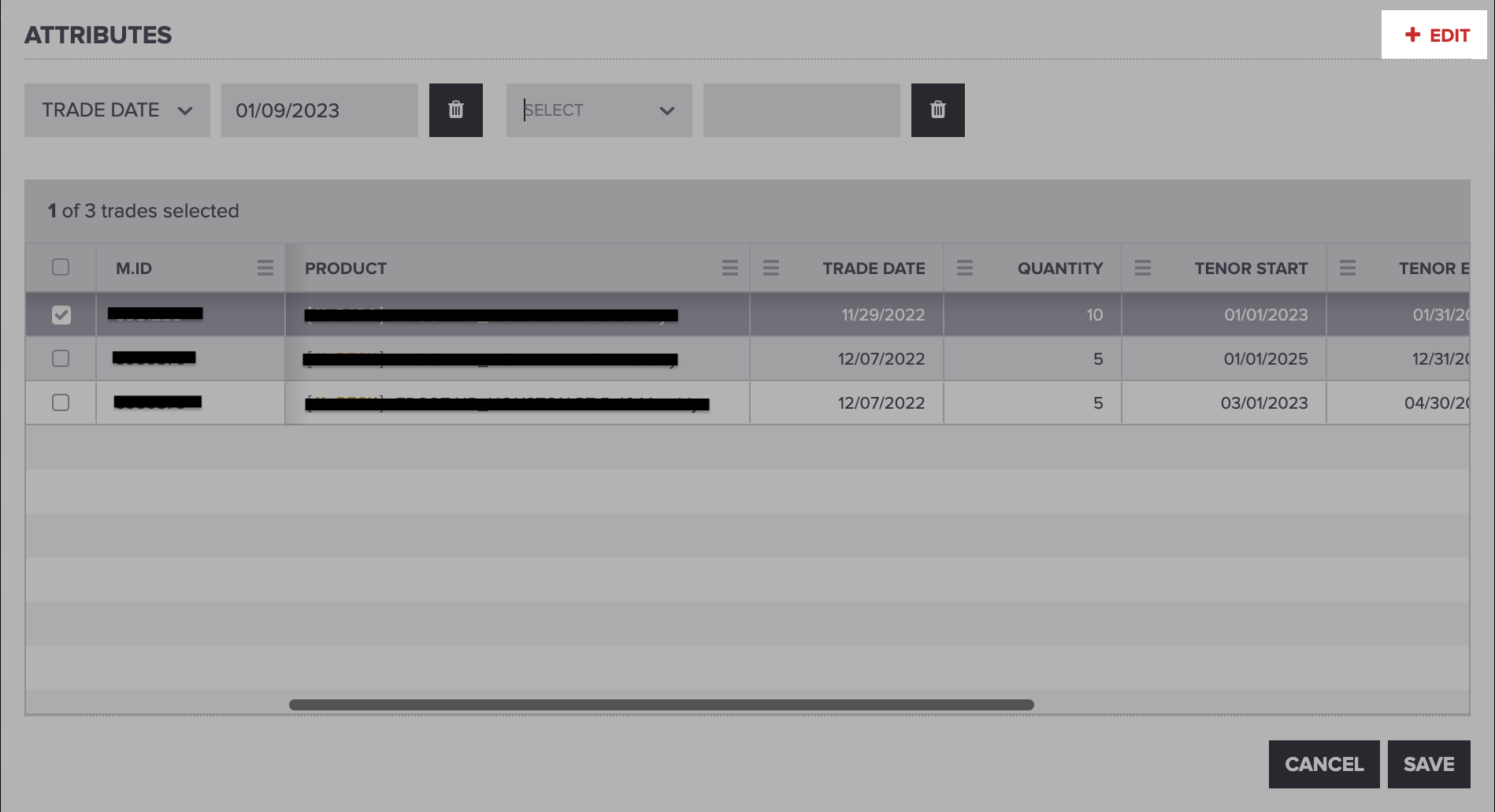 To add an attribute to change, click + EDIT for a new attribute row to appear, as shown below: