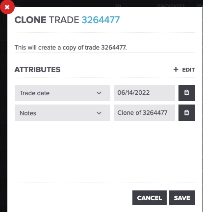 If no trade date is provided, the resulting trade will have a trade date equal to the user's local date at the time of cloning the trade.