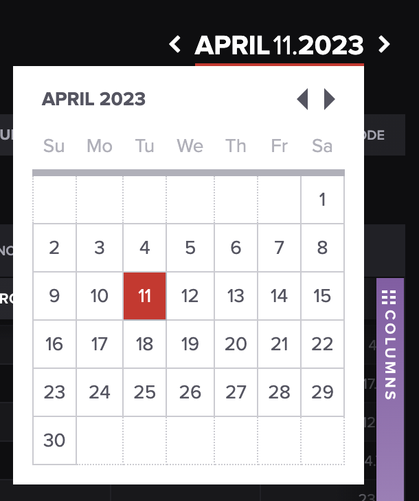 Or press the date at the top right of the screen and update the reporting date.