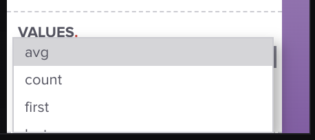 The default aggregation method is a summation. To change the aggregation, click the item in the column picker (for example, sum(Contract Quantity)). A list of aggregation options will appear—choose the desired method: