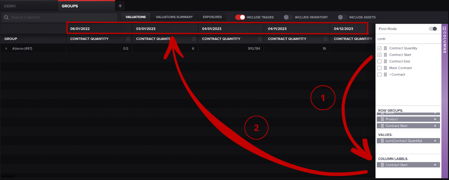 Once you've created a view, you can group and aggregate it for collapsible and expandable trade-level detail.